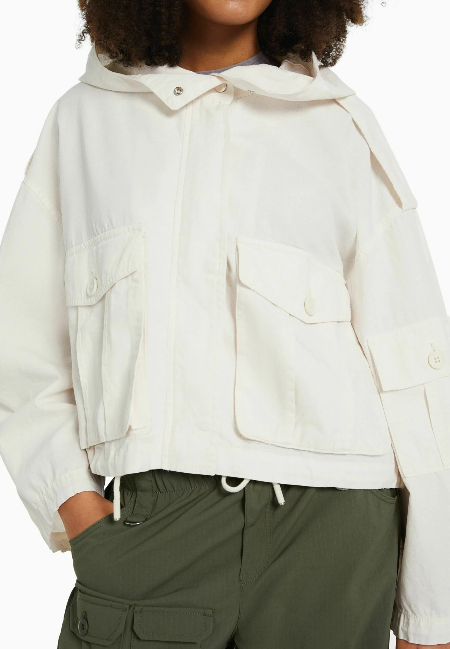 BERSHKA With Pockets – Hooded – Lichte Jas – White